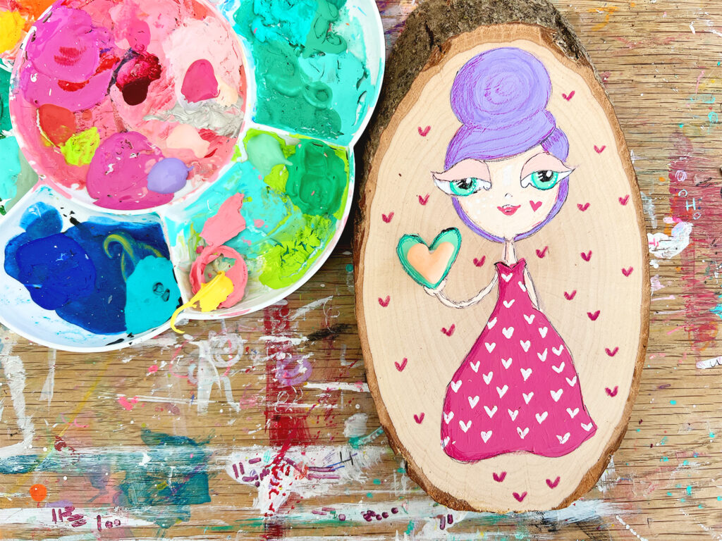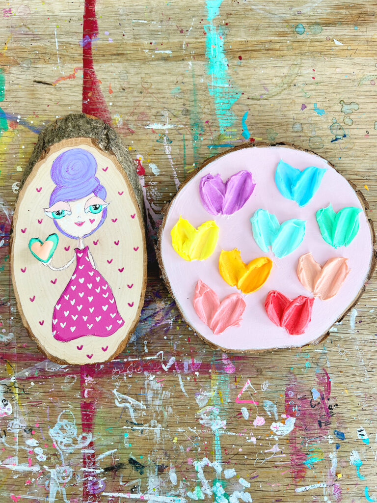 Heb je ze ook wel eens zien liggen? Van die schattige houtjes! Maar ja, WAT moet je daar nou op maken? I got you! Mijn nieuwste video “hoe schilder je op houtjes” is net online en ik maak daar echt wel twee hele leuke verschillende kunstwerkjes hehe. Op het ene houtje schilder ik een meisje, en op de andere maak ik hartjes met modeling paste. Hoe dan ook een win win situatie, want houtjes blij (die willen toch ook niet saai zijn?) en ik blij want weer van de straat!